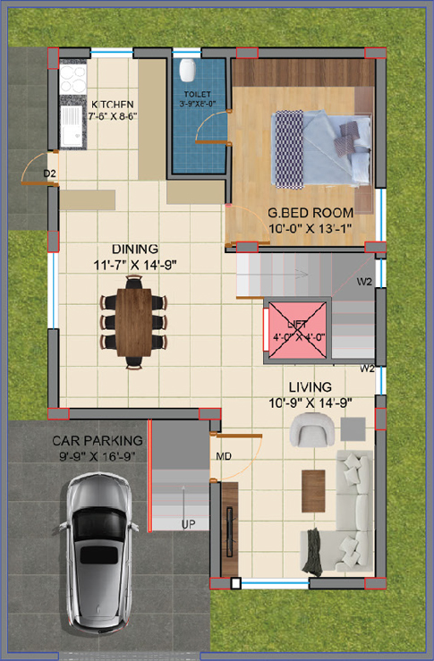 Ground Floor area: 862 Sq.ft